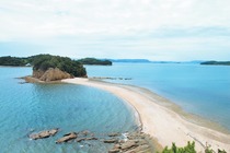 潮の満ち引きで島が離れたり繋がったりする不思議スポットで、